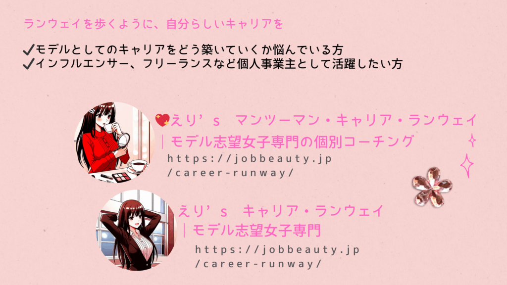 💖えり’s マンツーマン・キャリア・ランウェイ|サービスのご案内