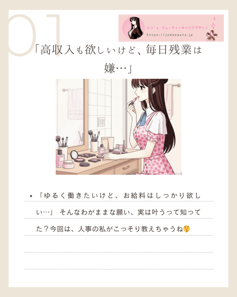 「高収入も欲しいけど、毎日残業は嫌…」 「ゆるく働きたいけど、お給料はしっかり欲しい…」