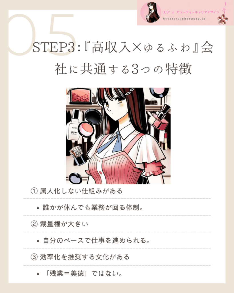 STEP 3:『高収入×ゆるふわ』会社に共通する3つの特徴
