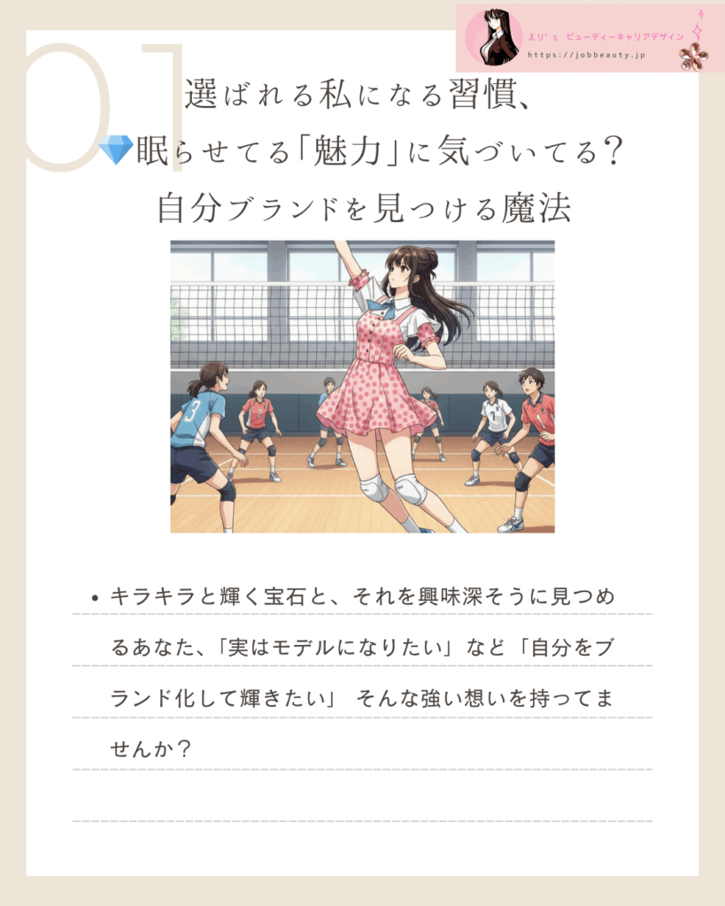 私たち世代が選ばれるためには、自分の魅力を最大限に発信できるプロデュース能力が不可欠。人事のえりが、あなたの**「才能の原石」を見つけ、未来を輝かせるための3つの戦略ステップ**を教えちゃうわ!