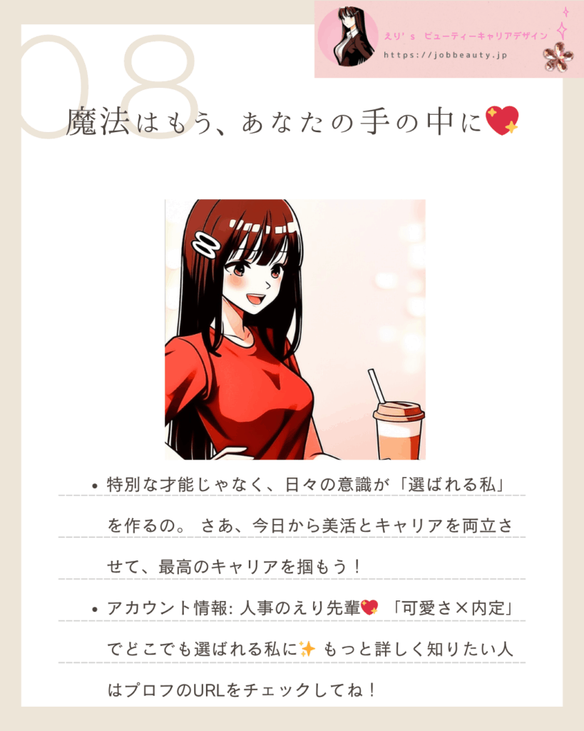 **「可愛い」を力に変え、これらの戦略的な行動を積み重ねることで、あなたは「秒速で内定を掴むオーラ」**を確実に手に入れられるわ!えり先輩が、あなたの輝く未来を全力で応援するよ!