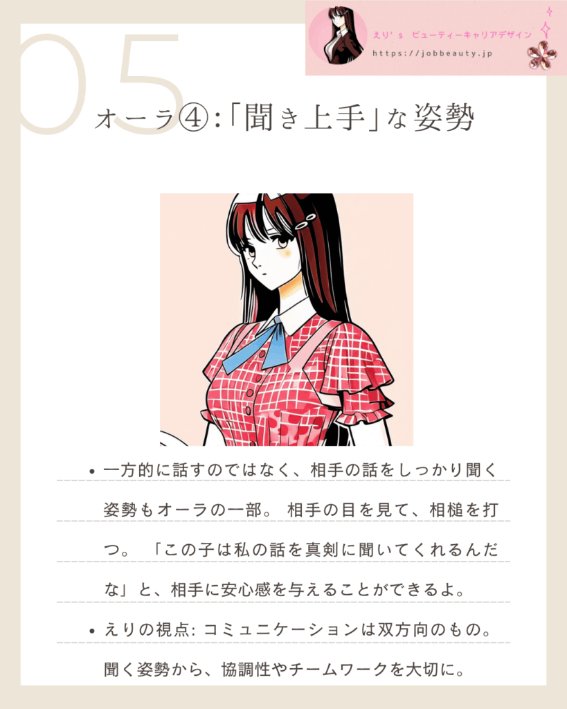 4. オーラ④:「聞き上手」な姿勢〜協調性を伝える魔法〜