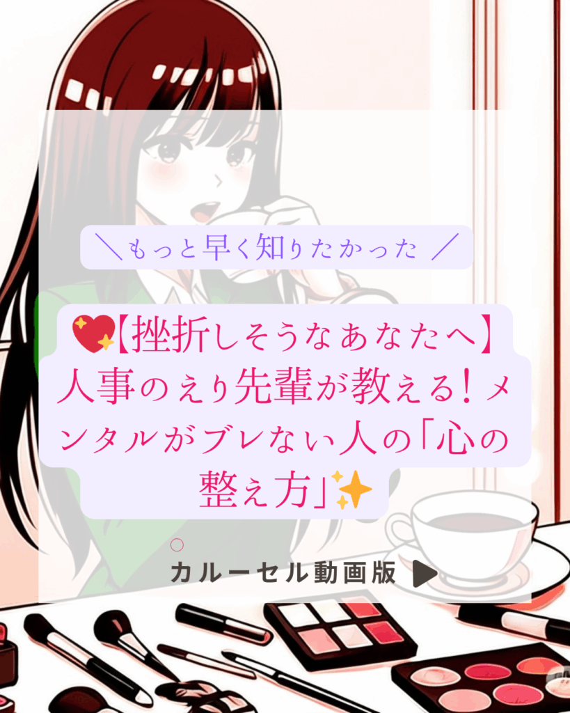 人事のえり先輩が、キャリアを積みながらも、いつも笑顔でいられる「プロの心の整え方」を、こっそり教えるわ。心のしなやかさを手に入れて、また明日から最高の私でいましょう。✨