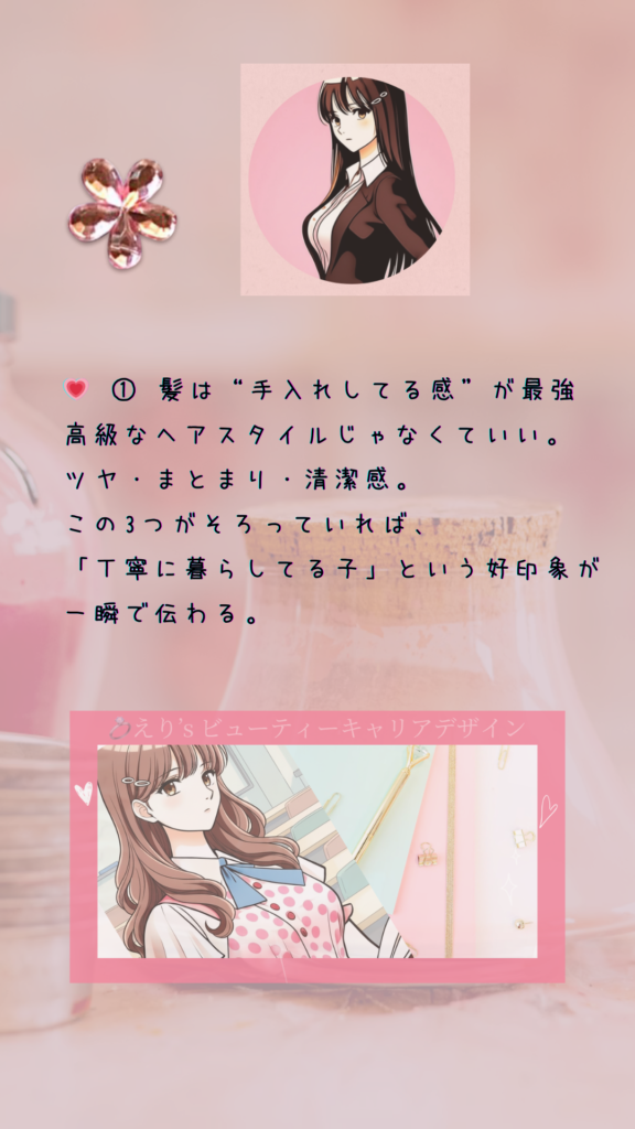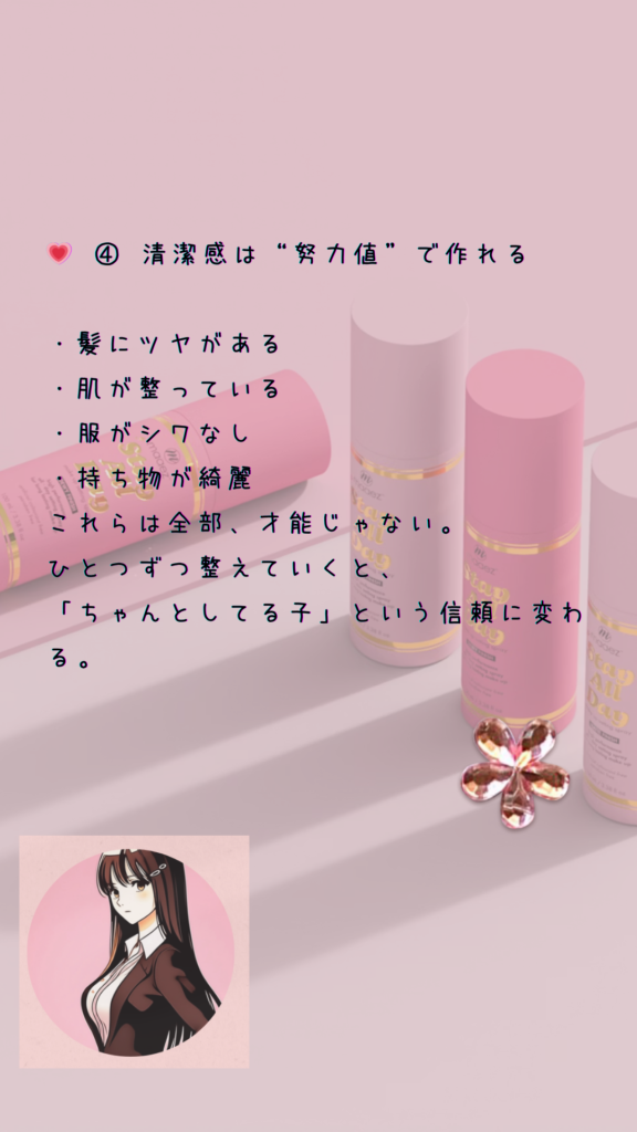 「丁寧に暮らしてる子」という好印象が一瞬で伝わる。