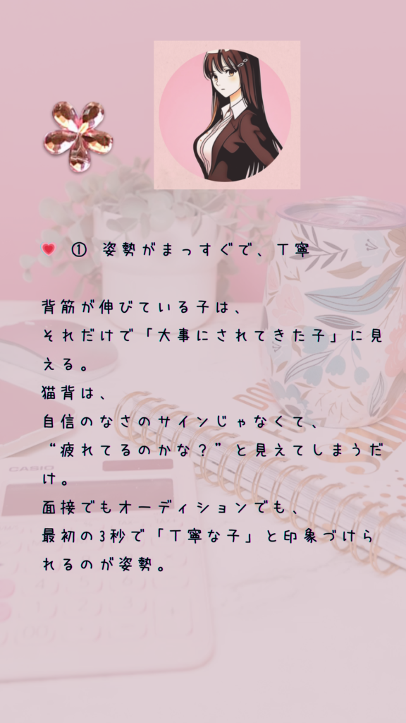 最初の3秒で「丁寧な子」と印象づけられるのが姿勢。
