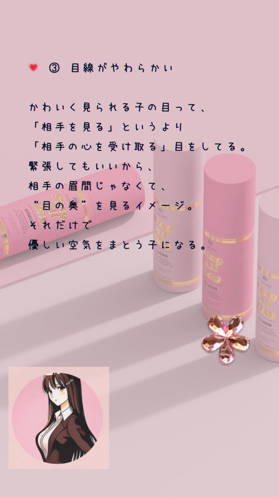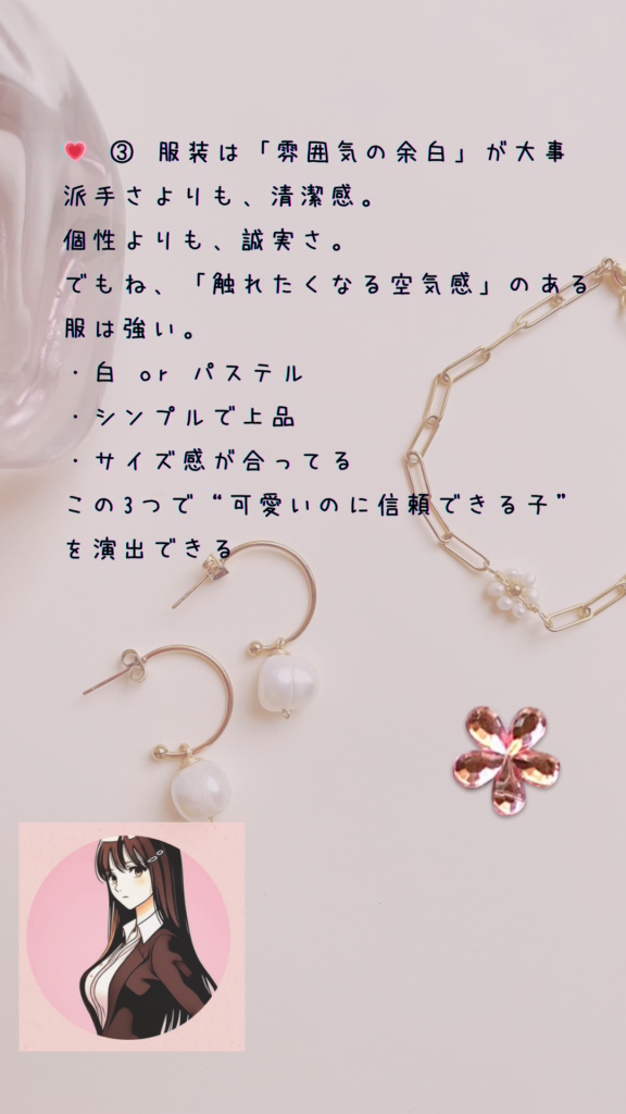 この3つで“可愛いのに信頼できる子”を演出できる。
